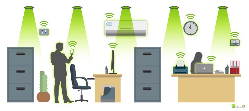 IEEE 802.11bb工作組提出的應(yīng)用案例是支援Li-Fi的檯燈,它可在使用者的電腦和核心網(wǎng)路之間提供安全的無(wú)線連接。從設(shè)備到燈具的上行鏈路通道採(cǎi)用在紅外區(qū)域中工作的較小發(fā)射器,這可以避免對(duì)下游訊號(hào)的干擾,並且還具有不會(huì)分散設(shè)備使用者注意力的好處。在這項(xiàng)技術(shù)發(fā)展的早期階段,人們?cè)鴵?dān)心使用者是否會(huì)注意到採(cǎi)用Li-Fi發(fā)射器的閃爍。調(diào)變速度如此之高,除了整體光輸出的顏色平衡發(fā)生可能偏移之外,效果並不明顯。然而,這是燈具設(shè)計(jì)師可以補(bǔ)償?shù)囊蛩亍?/span>