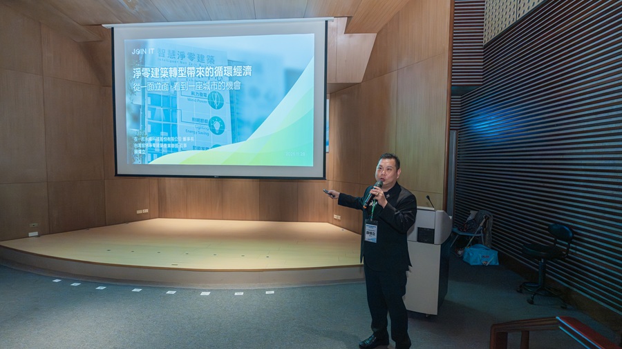 在技術部分,在一起永續科技董事長薛煒立指出,建築淨零可透過循環經濟模式進行整體改造,例如導入立面型太陽能或再生光電建材,使建築外牆具備創能、隔熱與節能三重效益,並結合綠色金融或廣告收益模式,讓減碳不再只是成本,更成為具投資價值的永續資產。
