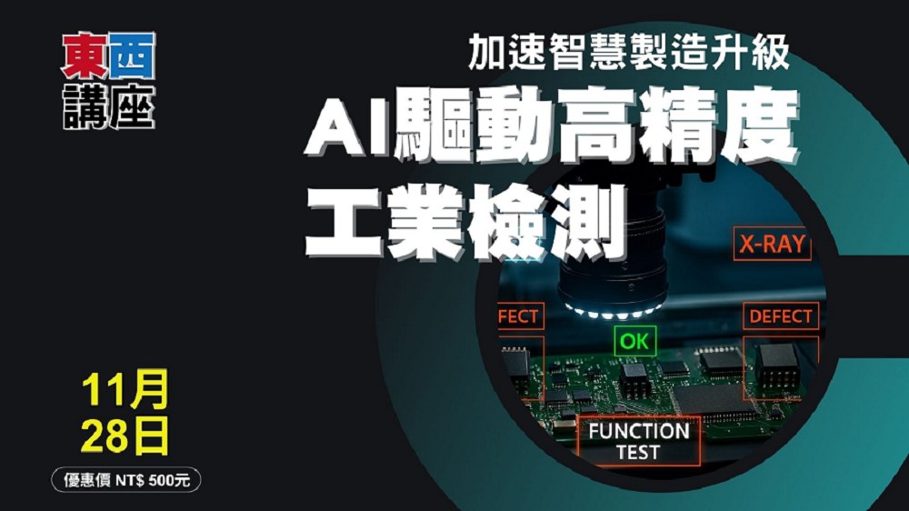 製造業正邁向AI驅動的新世代!現今已趨向「從AI偵測到智慧戰情室」的完整解決方案發展,透過AI結合FPGA高速影像運算、電子圍籬安全監控等技術,打造智慧製造的即時決策中樞,以期讓製造業達到效率、安全與精準管理三大效益,進而開啟「AI製造」新時代的商業機會。 本次【東西講座】邀請磐石智慧科技執行副總張修誠博士親臨現場,從PCB與半導體檢測的高精度應用,深入解析技術原理、導入效益與成功案例,協助企業全面升級生產效率與場域安全,掌握AI視覺巡檢的智慧製造的未來關鍵。並且更關注背後的產業策略與市場潛力。 ※ 本次的講座主軸如下: ● 智慧製造的自動化轉型需求 ● 智慧工廠安全場域監控 ● AI偵測與檢測技術解析 ● 市場應用與機會分析 ● 討論與QA 授課對象: 報名費用:NT$500元(含茶點)/人 報名/洽詢:招生人數為20人,任何問題請來信imc@ctimes.com.tw 活動地點:臺北數位產業園區A棟3樓(臺北市大同區承德路三段287號|捷運圓山站步行約7分鐘) 活動時間:2025年11月28日 (五)14:00~15:30